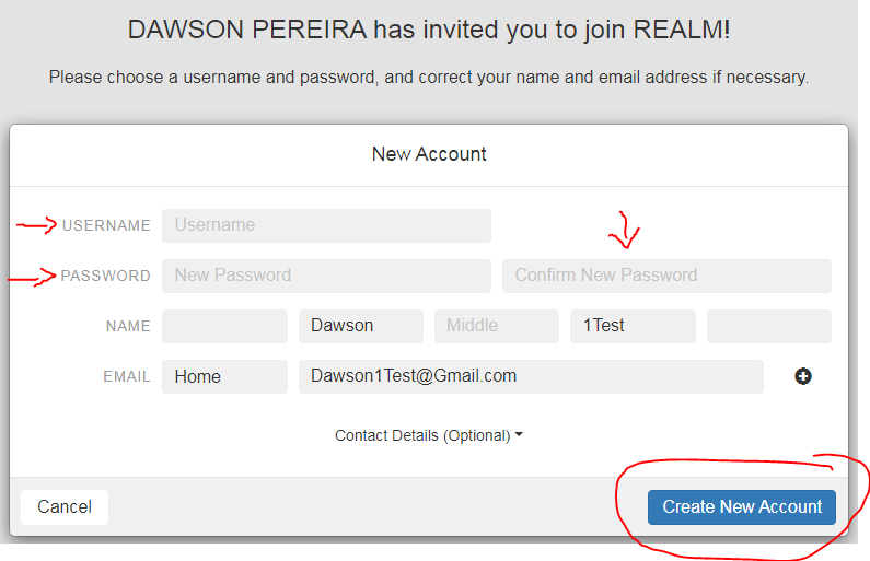Create Username and Password